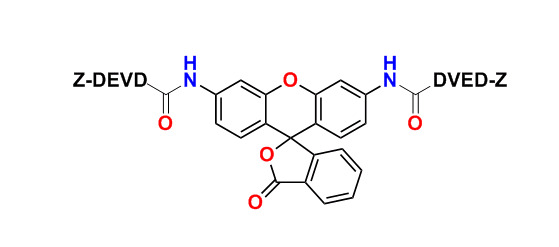 半胱天冬酶在細胞凋亡和細胞信號傳導中起重要作用。 Caspase 3/7(CPP32 / apopain)的激活對于細胞凋亡的起始是重要的。 Caspase 3/7也被鑒定為藥物篩選靶標。半胱天冬酶抑制劑具有抗癌和其他藥理學潛力。已經證明Caspase 3/7對肽序列Asp-Glu-Val-Asp(DEVD)具有底物選擇性。 我們的Amplite 熒光Caspase 3/7檢測試劑盒使用(Z-DEVD)2 R110作為熒光指示劑,用于檢測caspase 3/7活性。R110衍生的半胱天冬酶底物可能是用于熒光檢測各種半胱天冬酶活性的最敏感的指示劑。R110肽是無色和無熒光的。通過半胱天冬酶裂解R110肽產生強熒光R110,其可以在510-530nm下熒光測量,在488nm激發(fā),這是最常見的激發(fā)光源。半胱天冬酶誘導的R110水解的熒光增加與半胱天冬酶的活性成比例。
